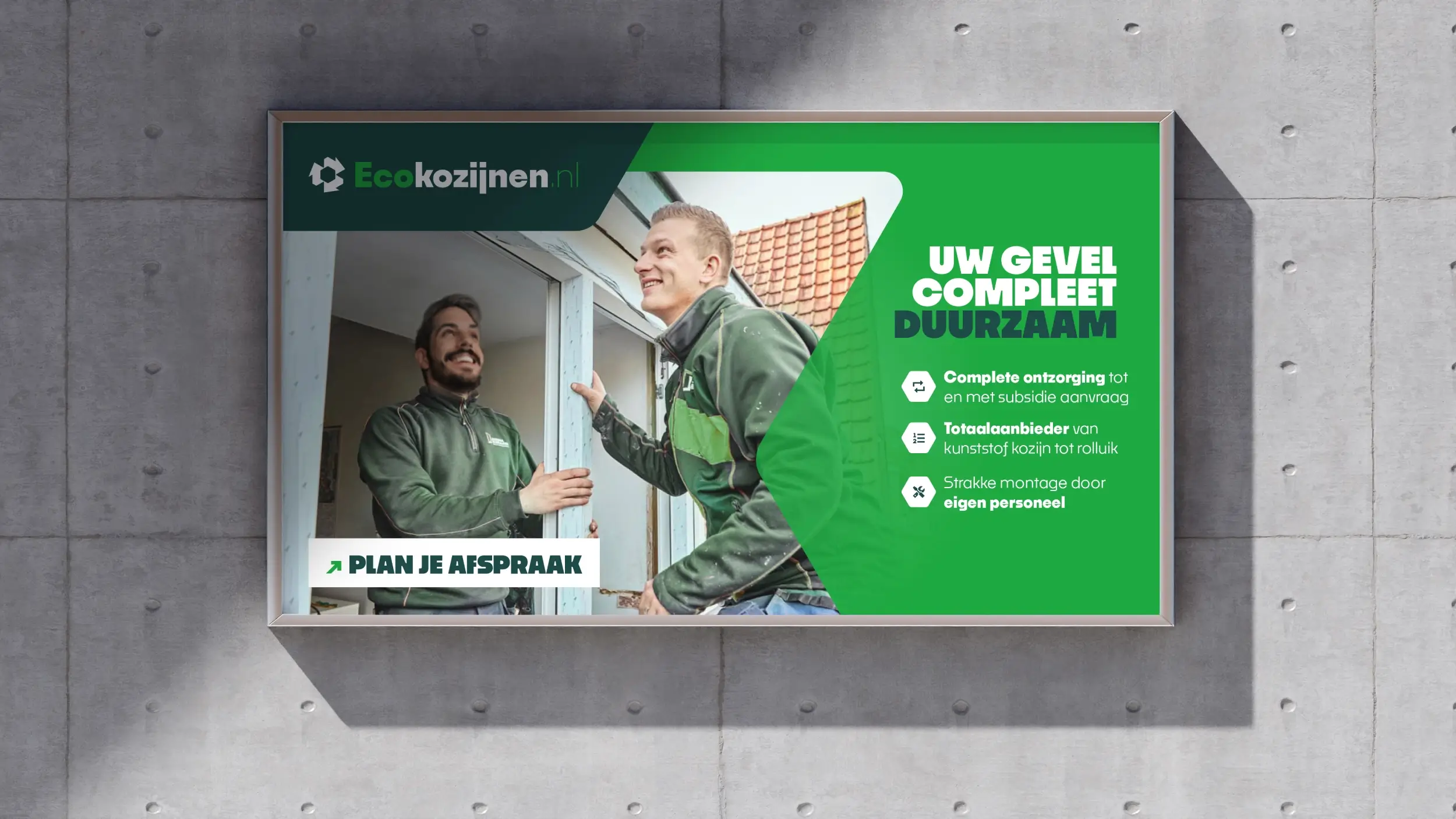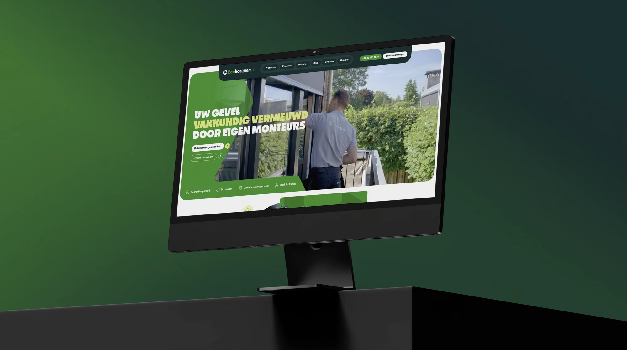De rebranding kreeg vorm in een volledig nieuw webdesign dat de beleving van het merk versterkt. Daarnaast hebben we een sfeerfilm geproduceerd die het verhaal van Ecokozijnen tot leven brengt en laat zien waar het bedrijf voor staat: service, vakmanschap en persoonlijk contact.